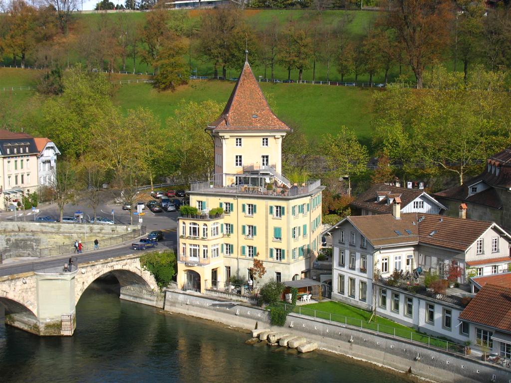at the bottom of the hill on the Nydegg Bridge - that's the original Lindt Chocolate factory, now condos