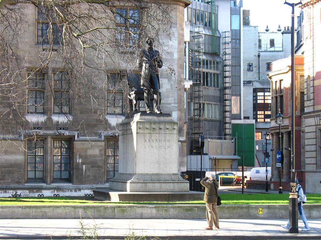 Abraham Lincoln across from Parliament and Big Ben, and right next to Westminster Abbey