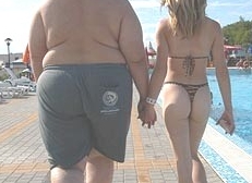 guy at an outdoor café with two younger (than him!) woman, maybe in